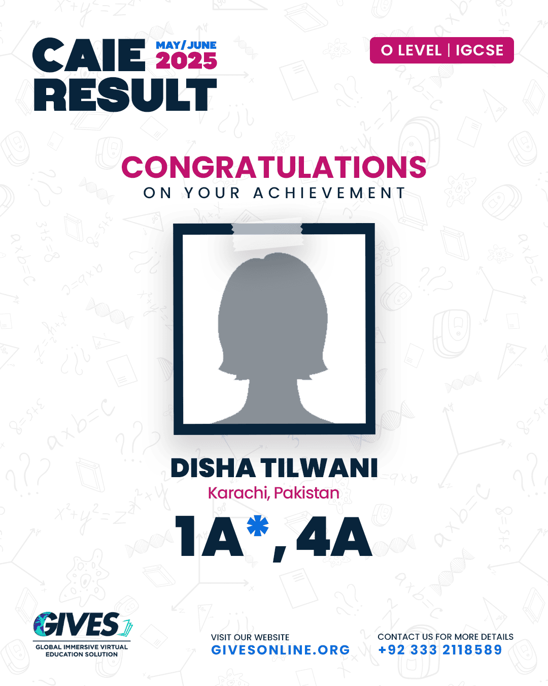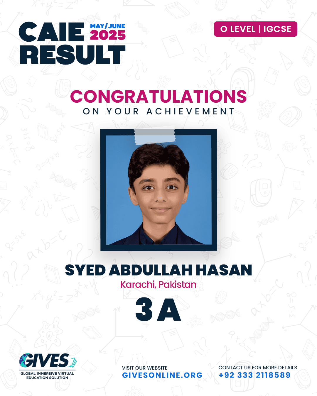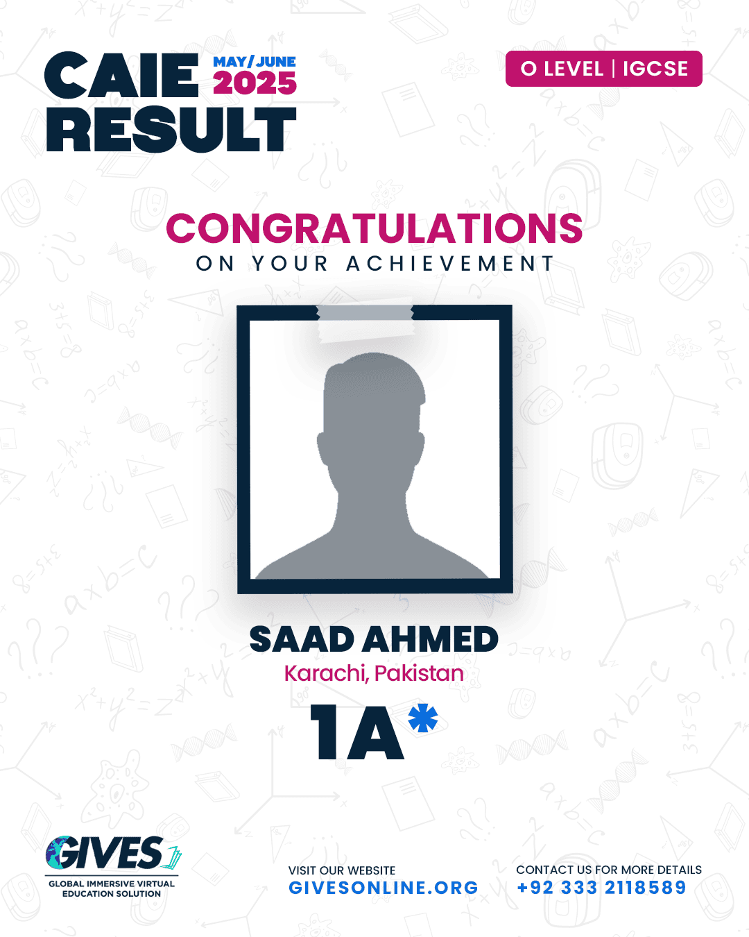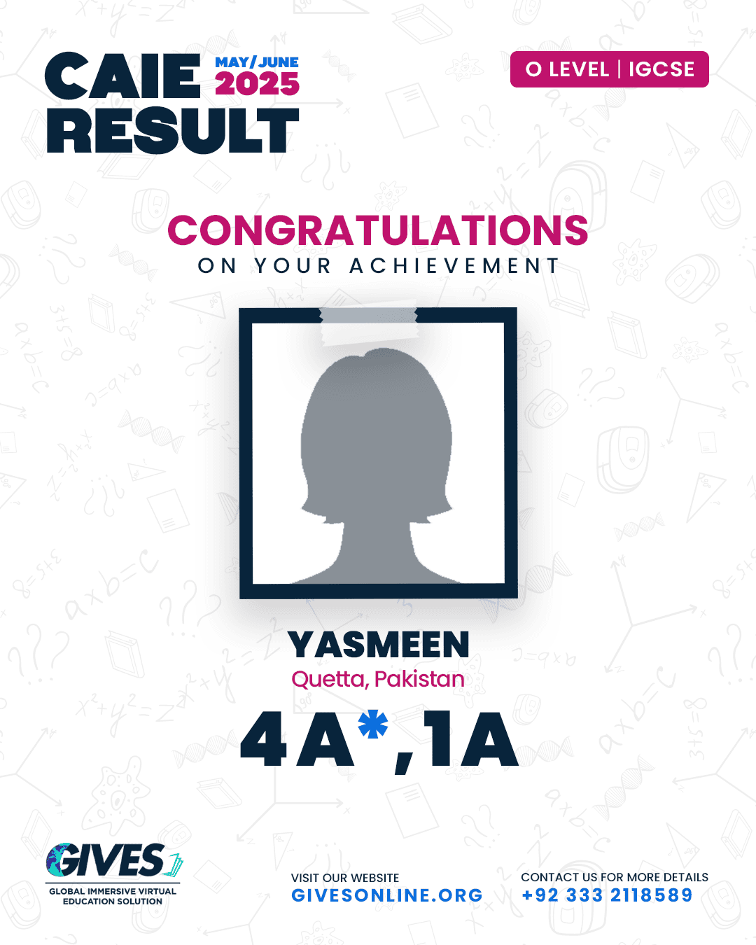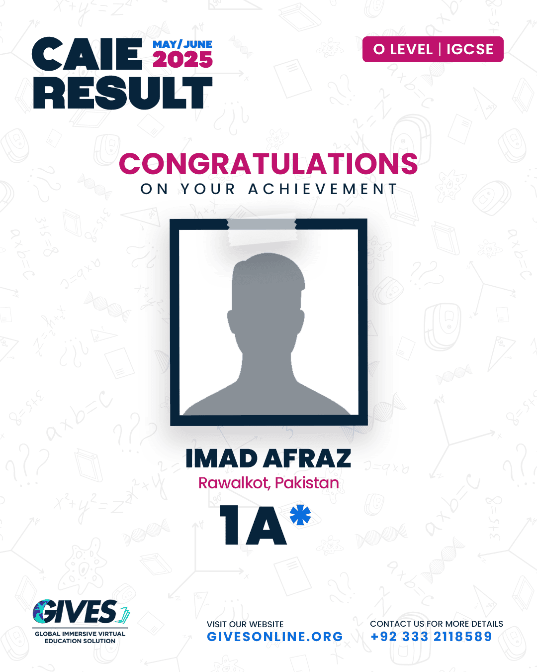 Welcome to GIVES - An Online Academy for O/A Level and IGCSE, where we have specialized in providing top-tier education for over six years. Our online academy boost a dedicated faculty of experts in all subjects, committed to delivering a comprehensive learning experience along with some extra curricullar activities. Through our personalized Learning Management System (LMS), students gain access to a wealth of resources, including recorded lectures, detailed notes, past paper sessions, and live classes hosted on Zoom. Our mission is to empower students by offering accessible, high-quality education that prepares them for academic success and beyond. With six years of experience and having taught thousands of students, we are proud to continue enhancing our educational offerings and supporting students in achieving their goals.