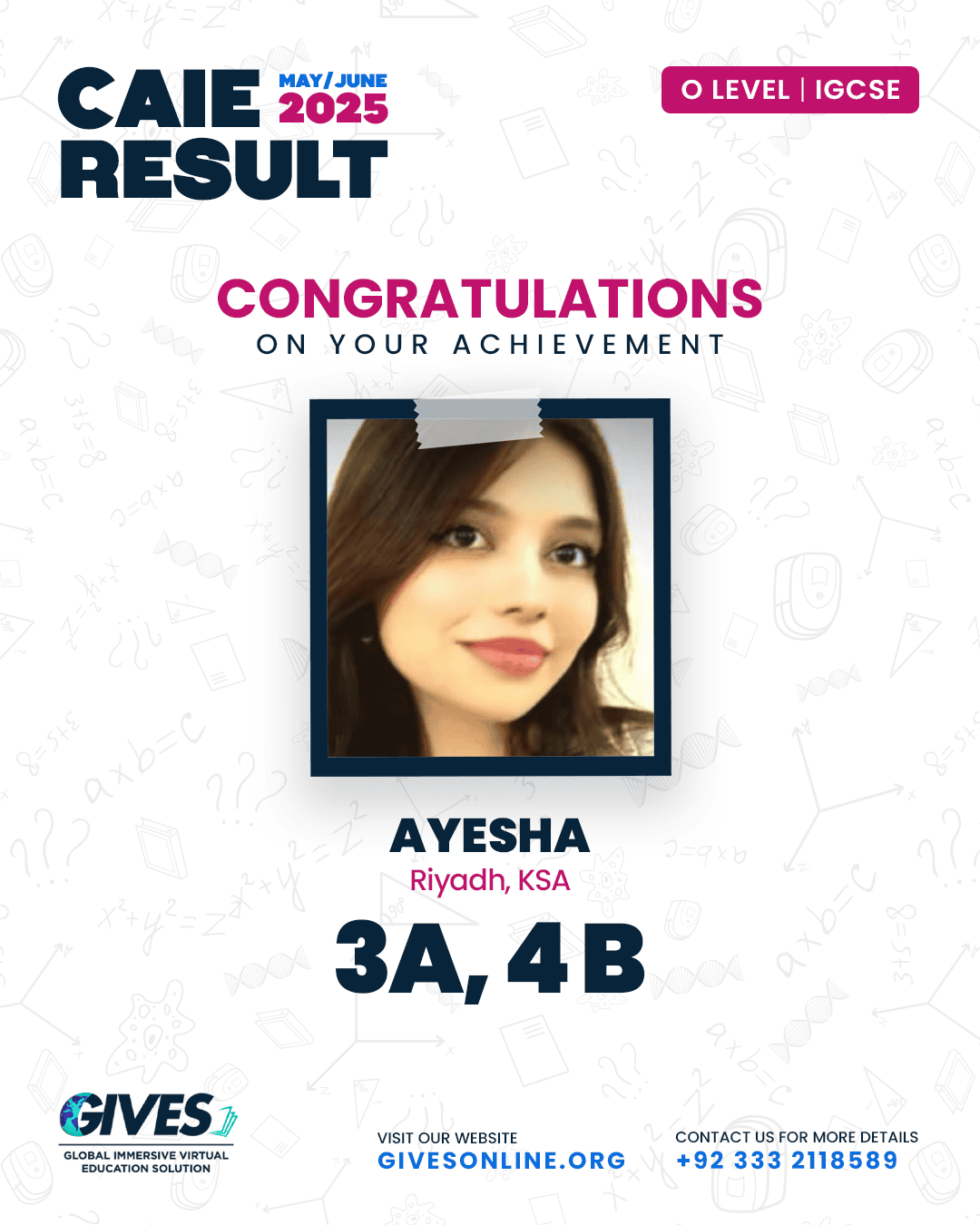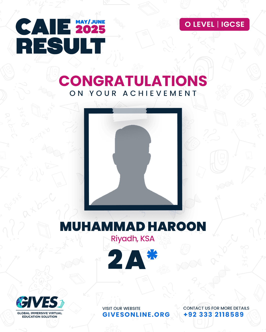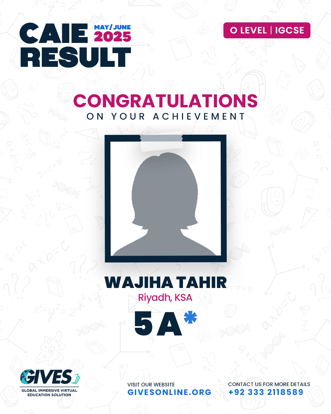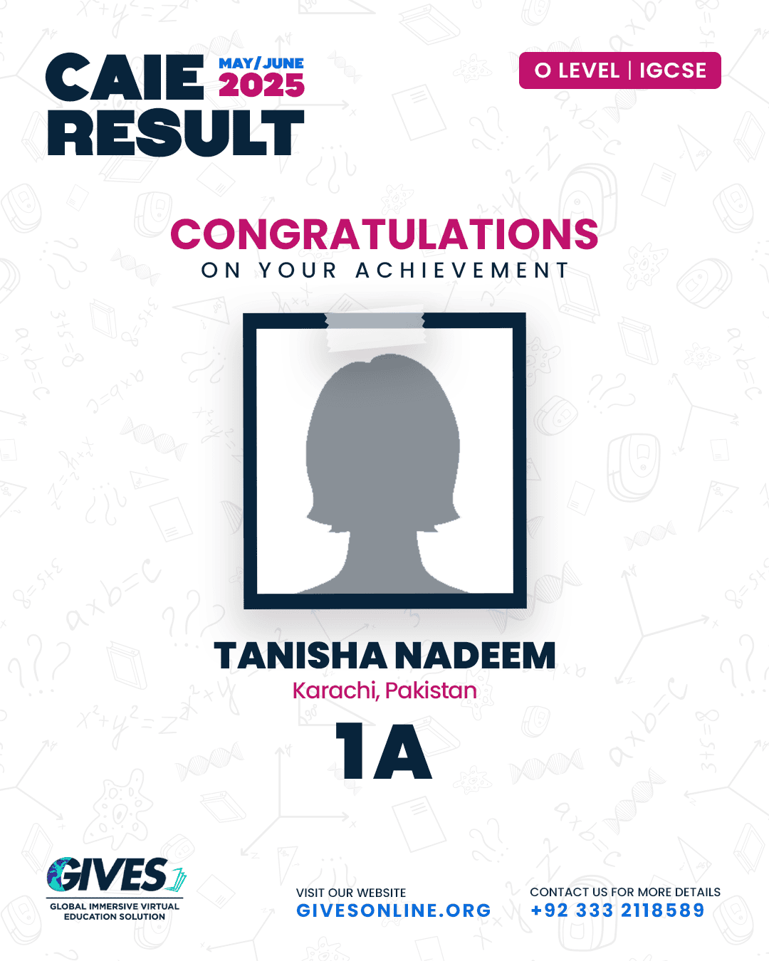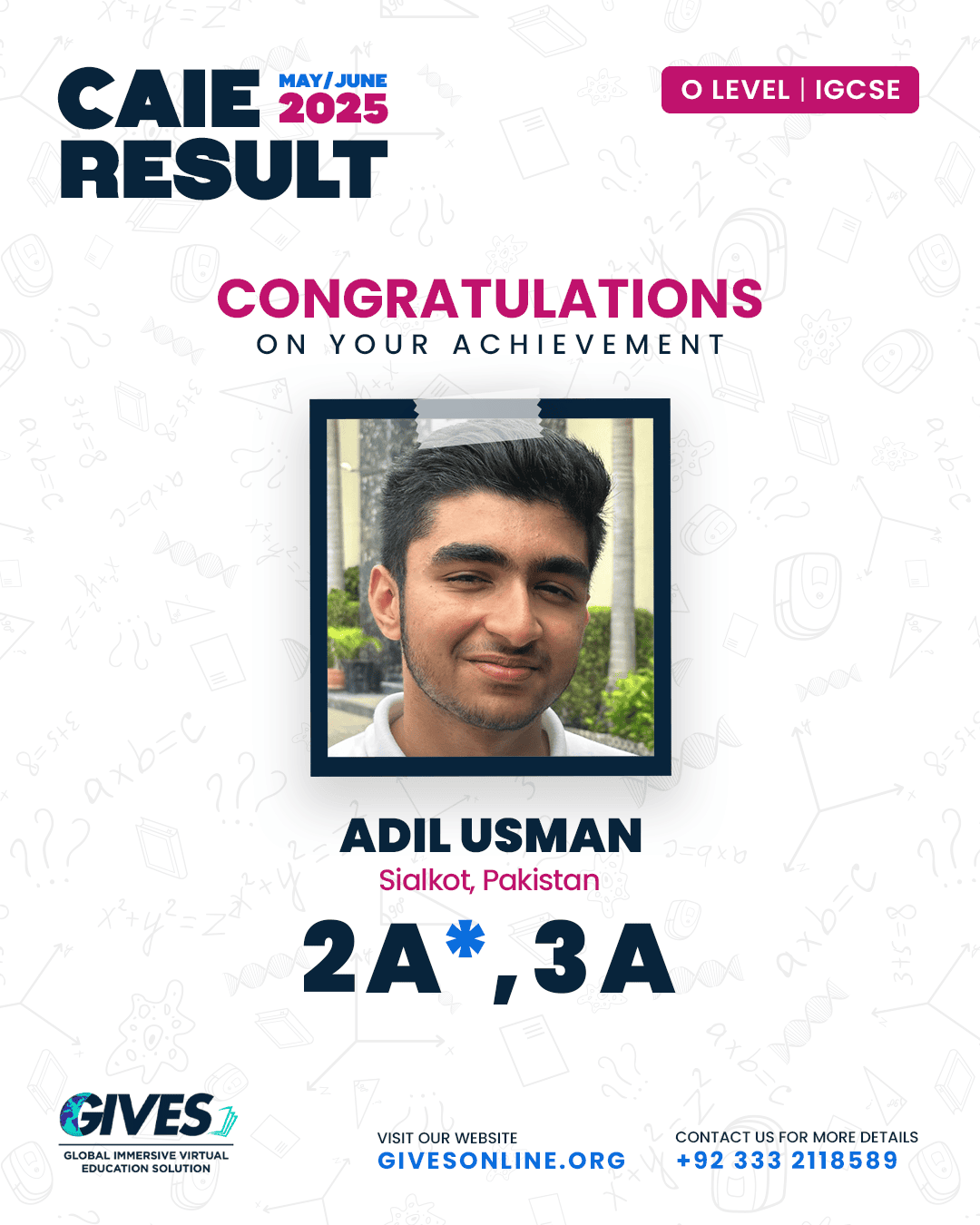 Welcome to GIVES - An Online Academy for O/A Level and IGCSE, where we have specialized in providing top-tier education for over six years. Our online academy boost a dedicated faculty of experts in all subjects, committed to delivering a comprehensive learning experience along with some extra curricullar activities. Through our personalized Learning Management System (LMS), students gain access to a wealth of resources, including recorded lectures, detailed notes, past paper sessions, and live classes hosted on Zoom. Our mission is to empower students by offering accessible, high-quality education that prepares them for academic success and beyond. With six years of experience and having taught thousands of students, we are proud to continue enhancing our educational offerings and supporting students in achieving their goals.