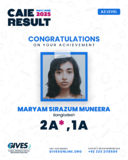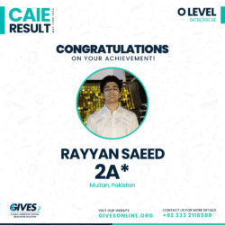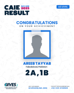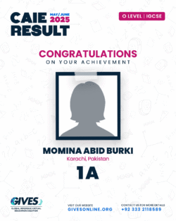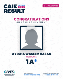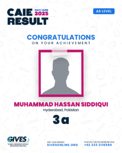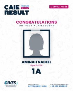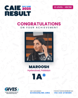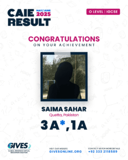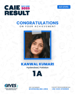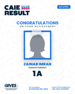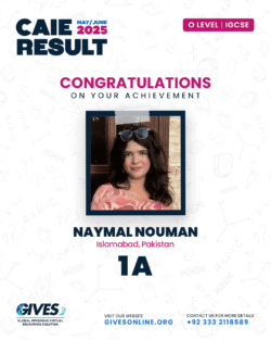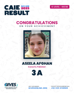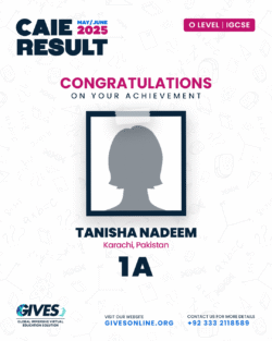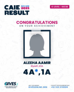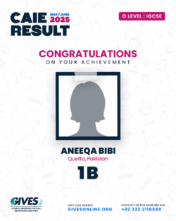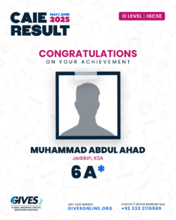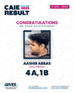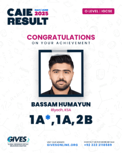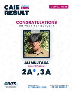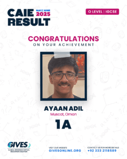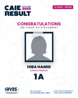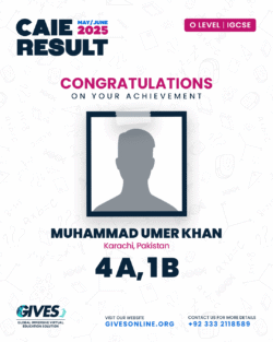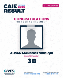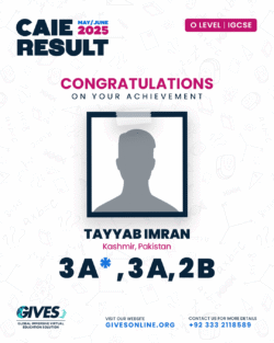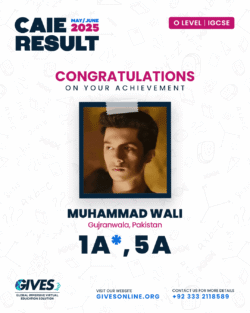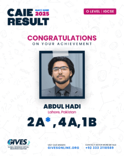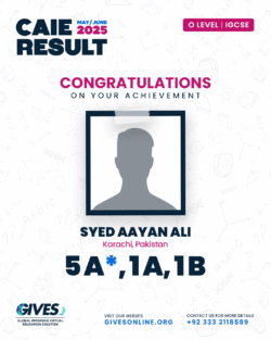 Welcome to GIVES - An Online Academy for O/A Level and IGCSE, where we have specialized in providing top-tier education for over six years. Our online academy boost a dedicated faculty of experts in all subjects, committed to delivering a comprehensive learning experience along with some extra curricullar activities. Through our personalized Learning Management System (LMS), students gain access to a wealth of resources, including recorded lectures, detailed notes, past paper sessions, and live classes hosted on Zoom. Our mission is to empower students by offering accessible, high-quality education that prepares them for academic success and beyond. With six years of experience and having taught thousands of students, we are proud to continue enhancing our educational offerings and supporting students in achieving their goals.